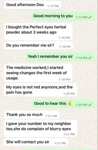 Five years ago a friend of mine who based in Zimbabwe gave me a call that he discover a very powerful herbs that cures our common eye related issues plus its works like magic on all his patient.
