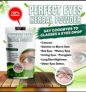 Perfect Eyes Herbal Powder by Ancestral herbs is the ideal herbal eye supplement carefully manufactured to alleviate itching and painfulness due to eye related issues, it has been used by many and there have been a lot of good reviews about this wonderful product.